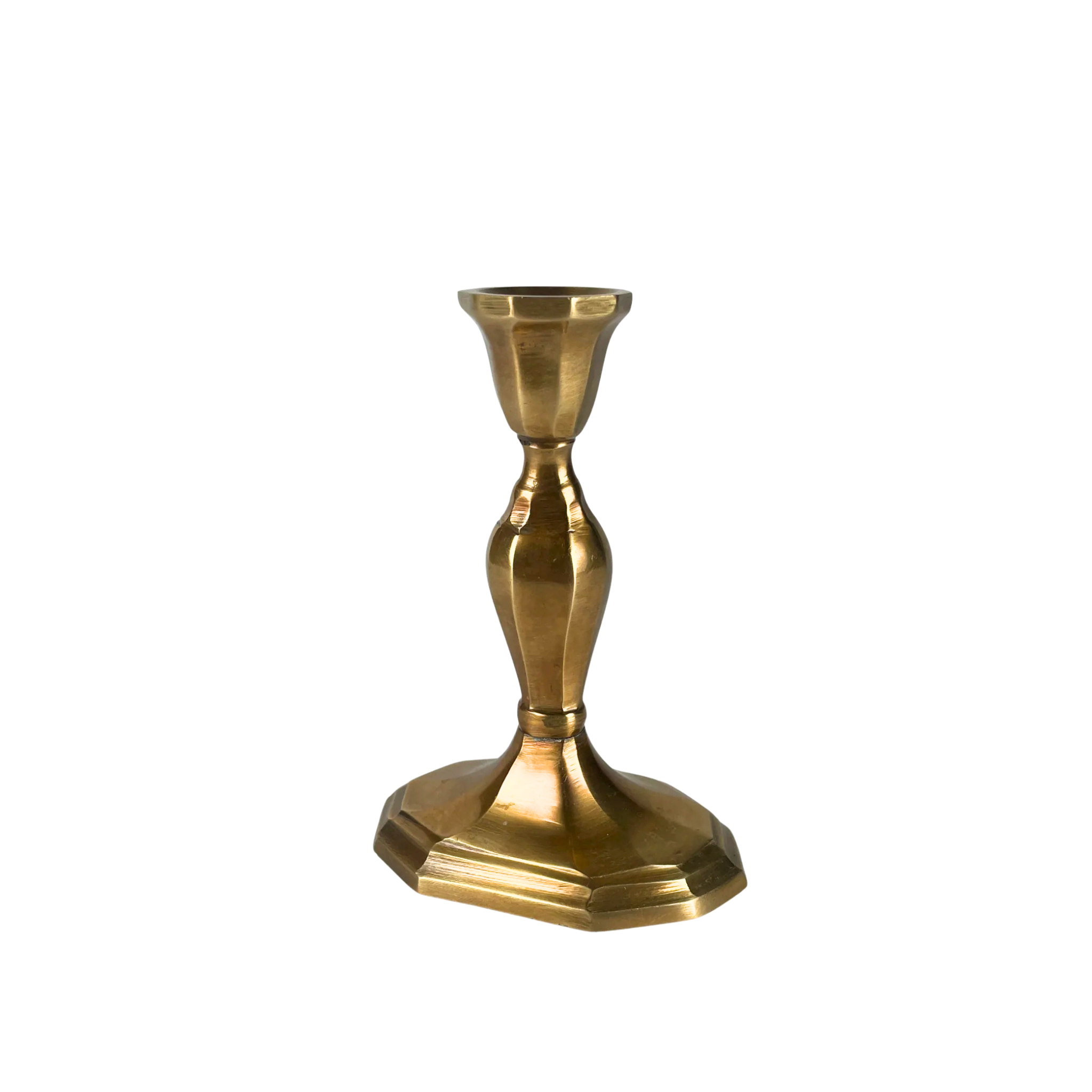 Light up your space with this Antique Brass Candlestick! Perfect for adding some vintage flair to your dressing table, or setting the mood for any season or event. Don't miss out on this unique piece!