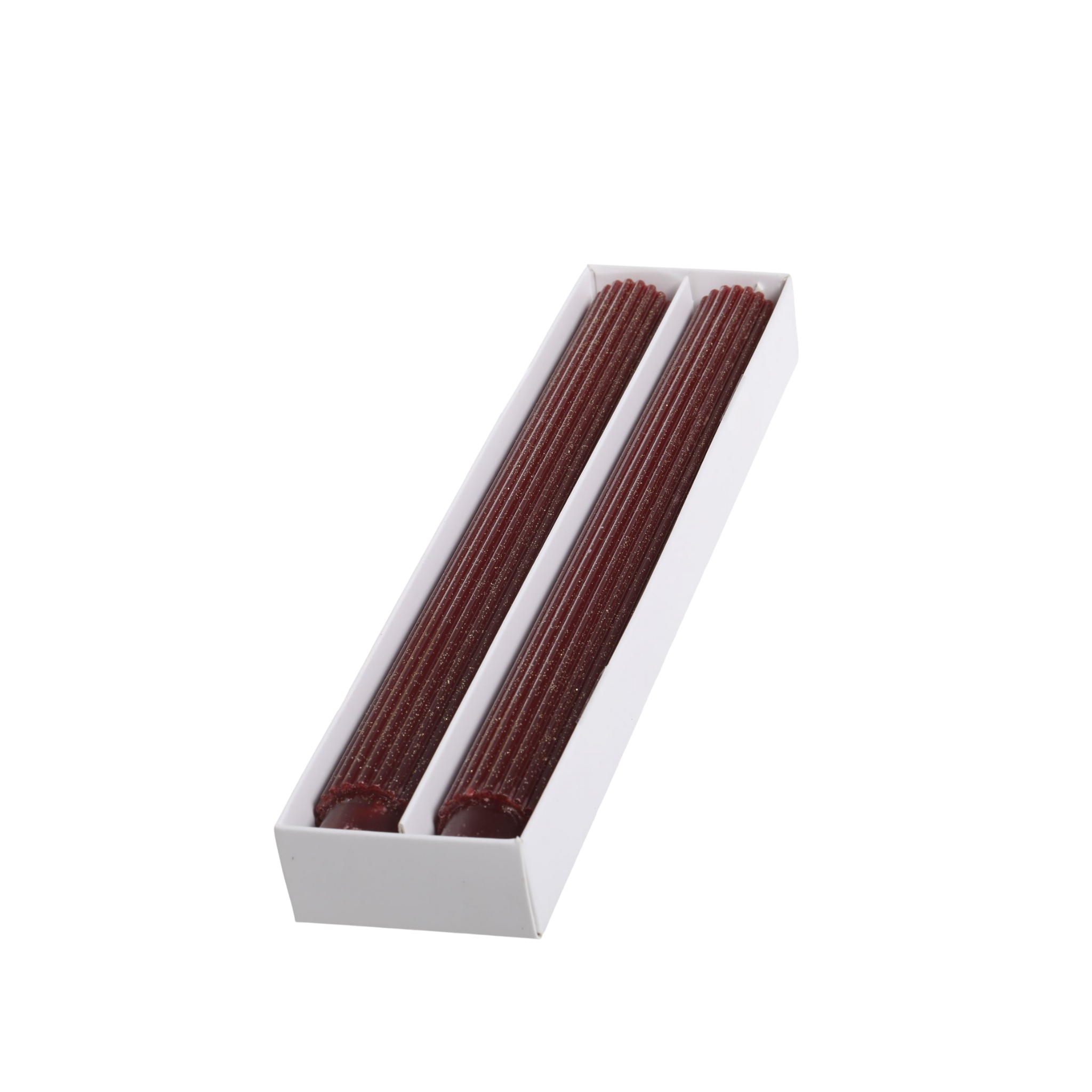 This set of two glitter red dinner candles offers up to 16 hours of burn time, combining a radiant glow with a touch of refined sparkle. Perfect for creating an elegant and inviting ambiance, these candles enhance any special occasion or intimate dinner with understated sophistication and lasting warmth.