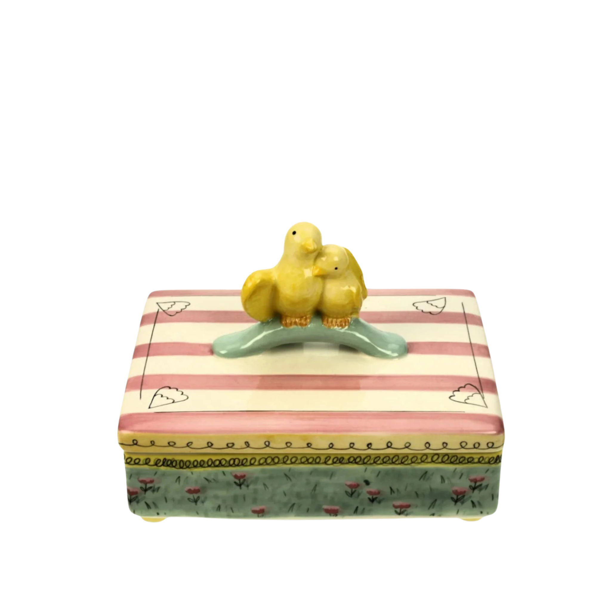 Add a charming touch to your kitchen or desk with this delightful ceramic box adorned with playful bird designs. Perfect for storing tea bags, biscuits, or even secret love letters, it keeps your little treasures safe and stylish.