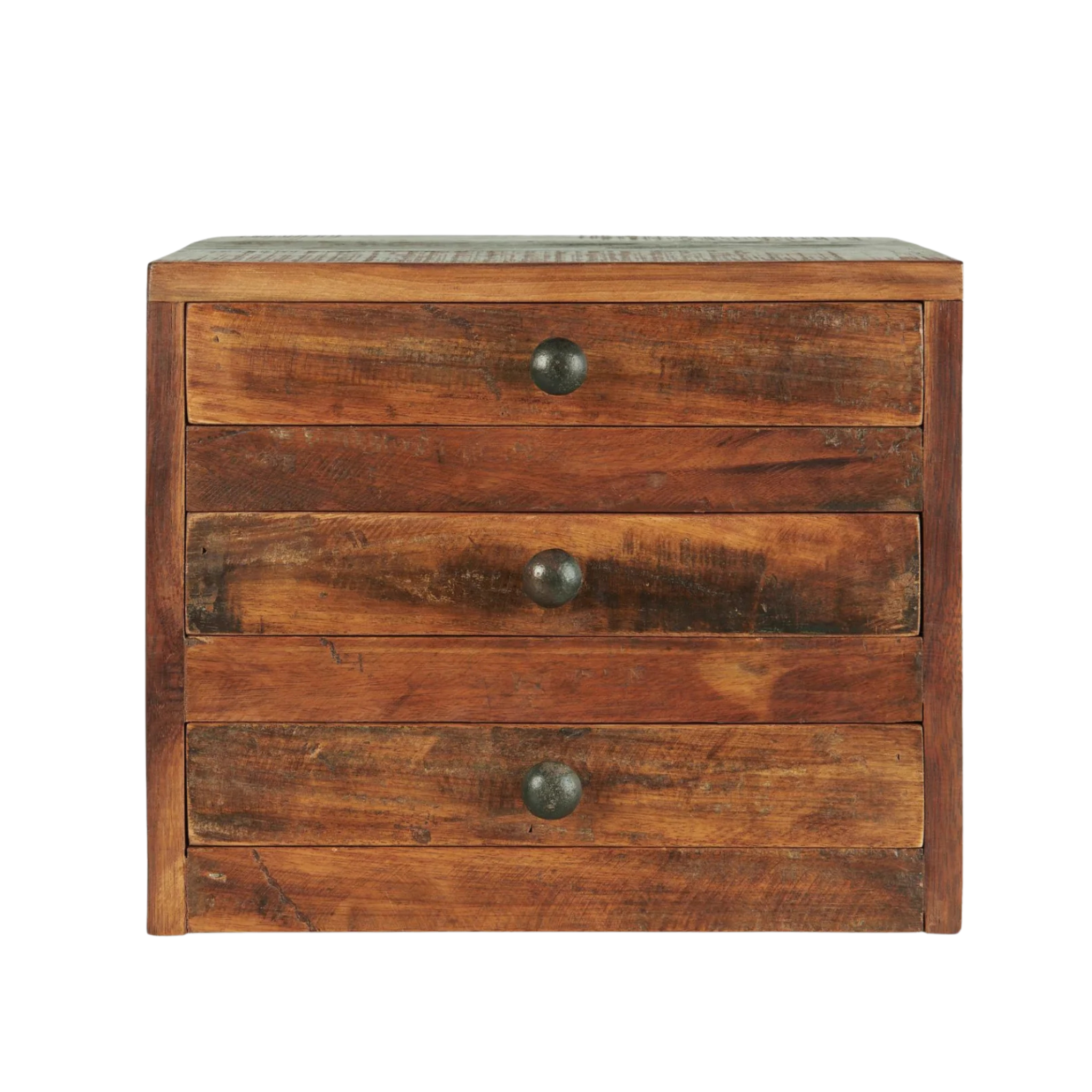 Add elegant storage to your space with our luxurious Chest with Drawers. With three spacious drawers, this unique chest not only adds a touch of sophistication to your room, but also provides ample space to keep your belongings organised and easily accessible.