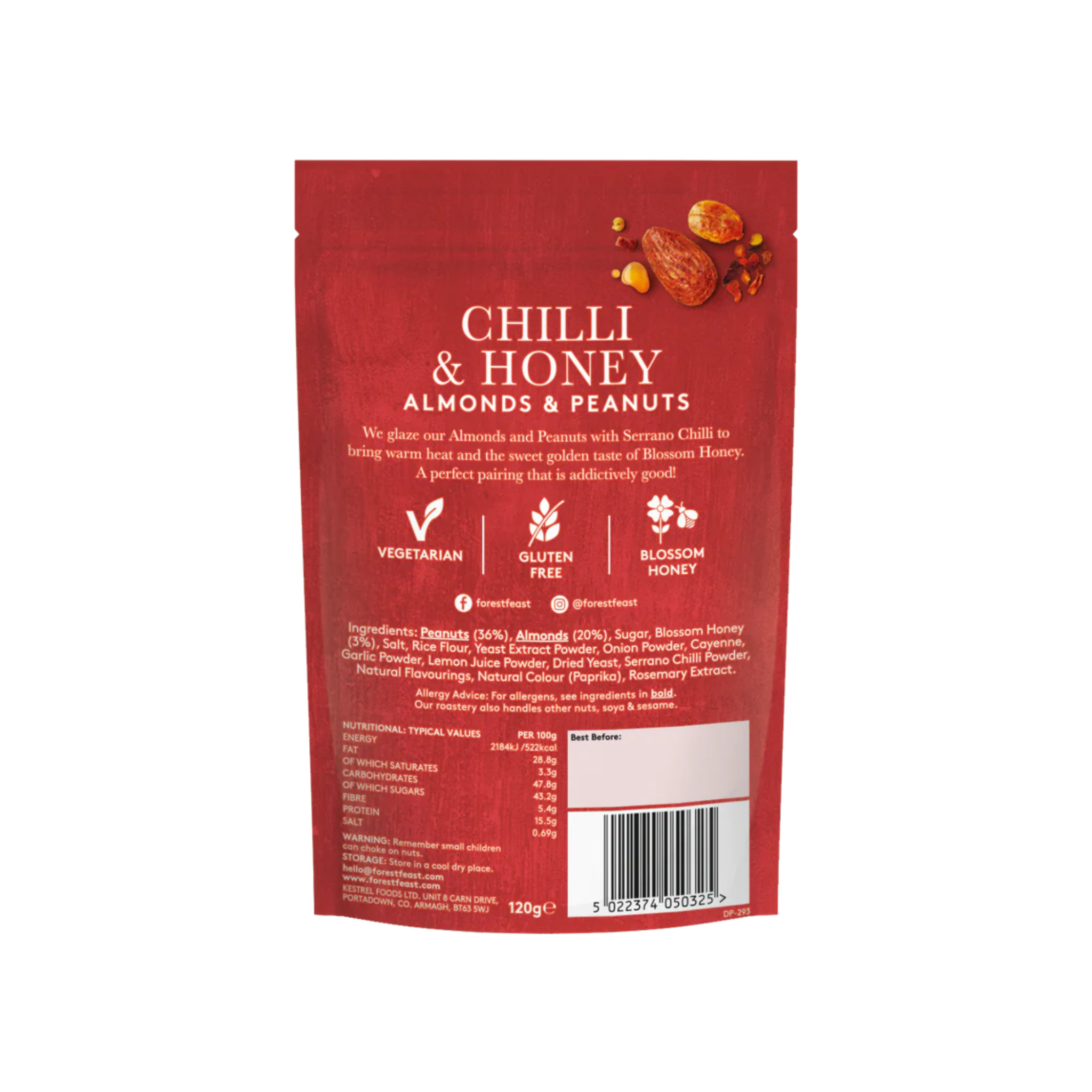 Glazed almonds and peanuts infused with fiery Serrano chilli heat, balanced by the warm sweetness of Blossom honey. This addictively good combination delivers a perfect contrast of flavours — bold spice meets golden, floral notes in every handful. A sophisticated snack that keeps you coming back for more.
