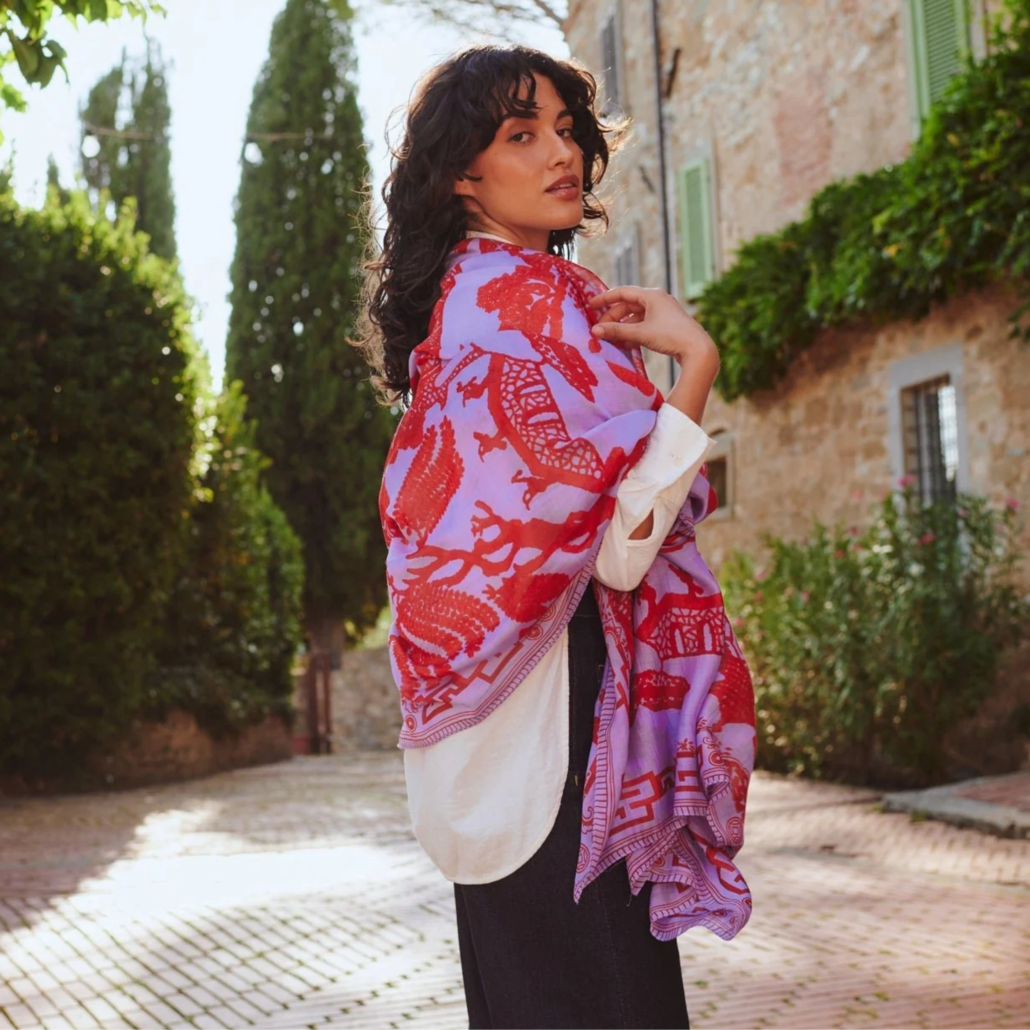 A beloved design reimagined in striking scarlet and electric lilac, this scarf makes a bold statement for those who embrace vibrant colour. Measuring a generous 100cm x 200cm, it transitions effortlessly from winter layering to summer draping, offering versatility across seasons. The intensity of its palette demands confidence—perfect for adding dramatic flair to any wardrobe.