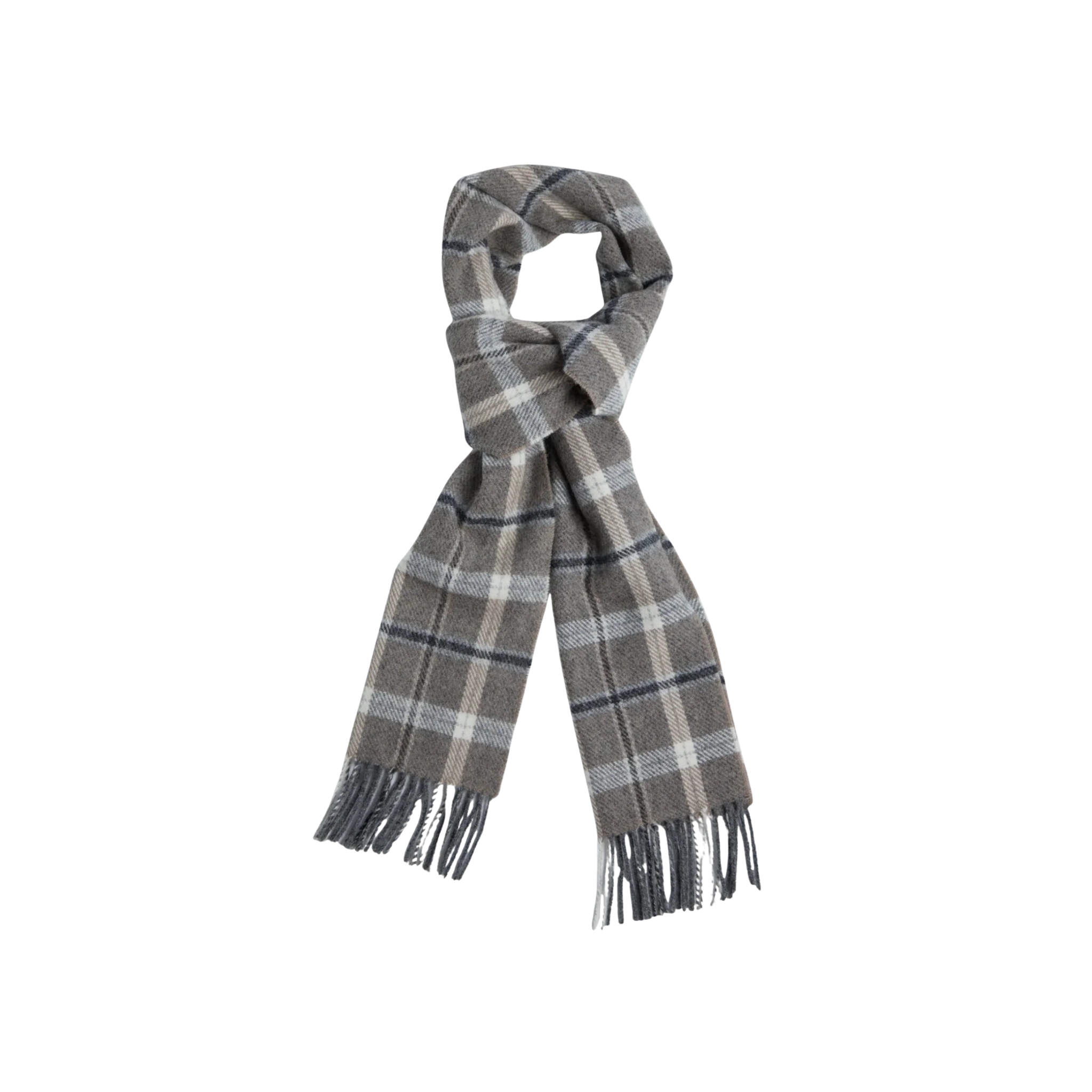 Wrap yourself in the understated luxury of this Grey and Mink Check Lambswool Scarf, expertly crafted in Ireland. Its soft lambswool offers exceptional warmth and comfort, making it the perfect cozy accessory for cooler days. The elegant check pattern adds a refined touch to any outfit, blending timeless style with superior quality. Ideal for those who appreciate sophisticated, artisanal craftsmanship.
