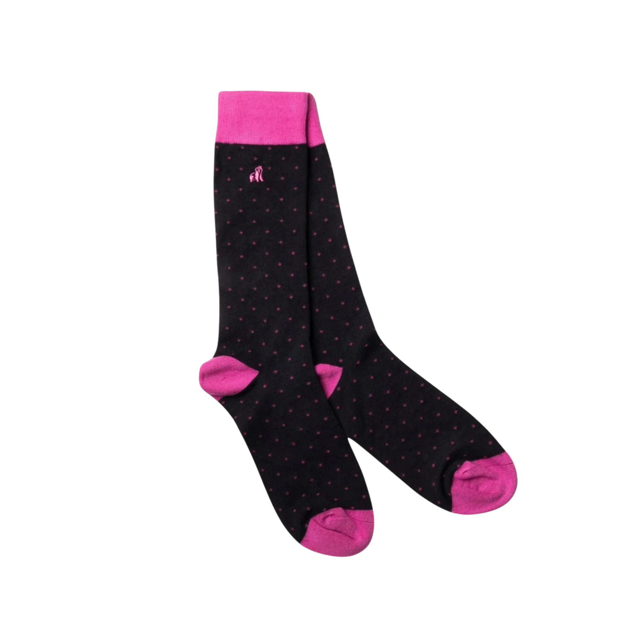 Looking for socks with a conscience? These ethically made Ladies Spotted Pink socks are just what you need! They're not just soft, they're super soft, providing you with the comfort you deserve while knowing that you're supporting fair labor practices.
