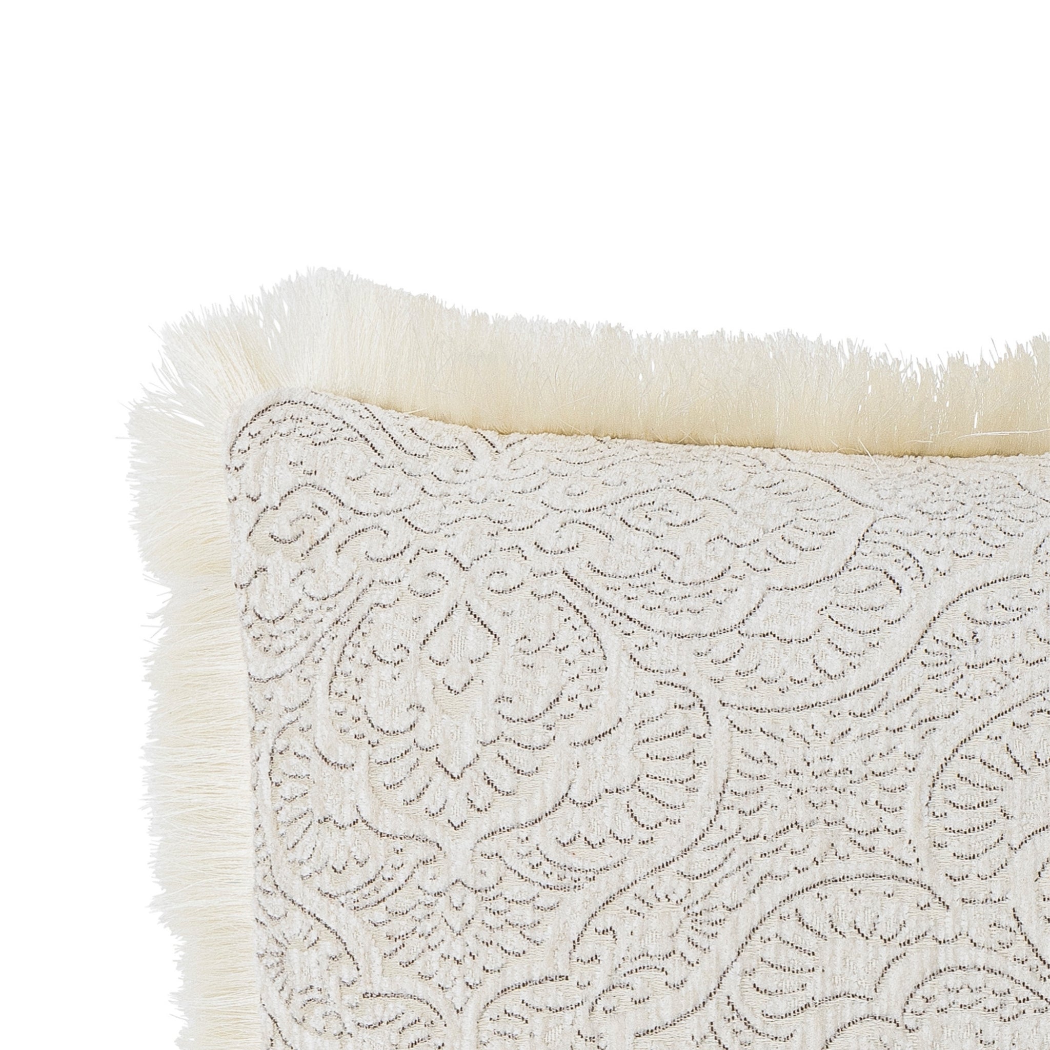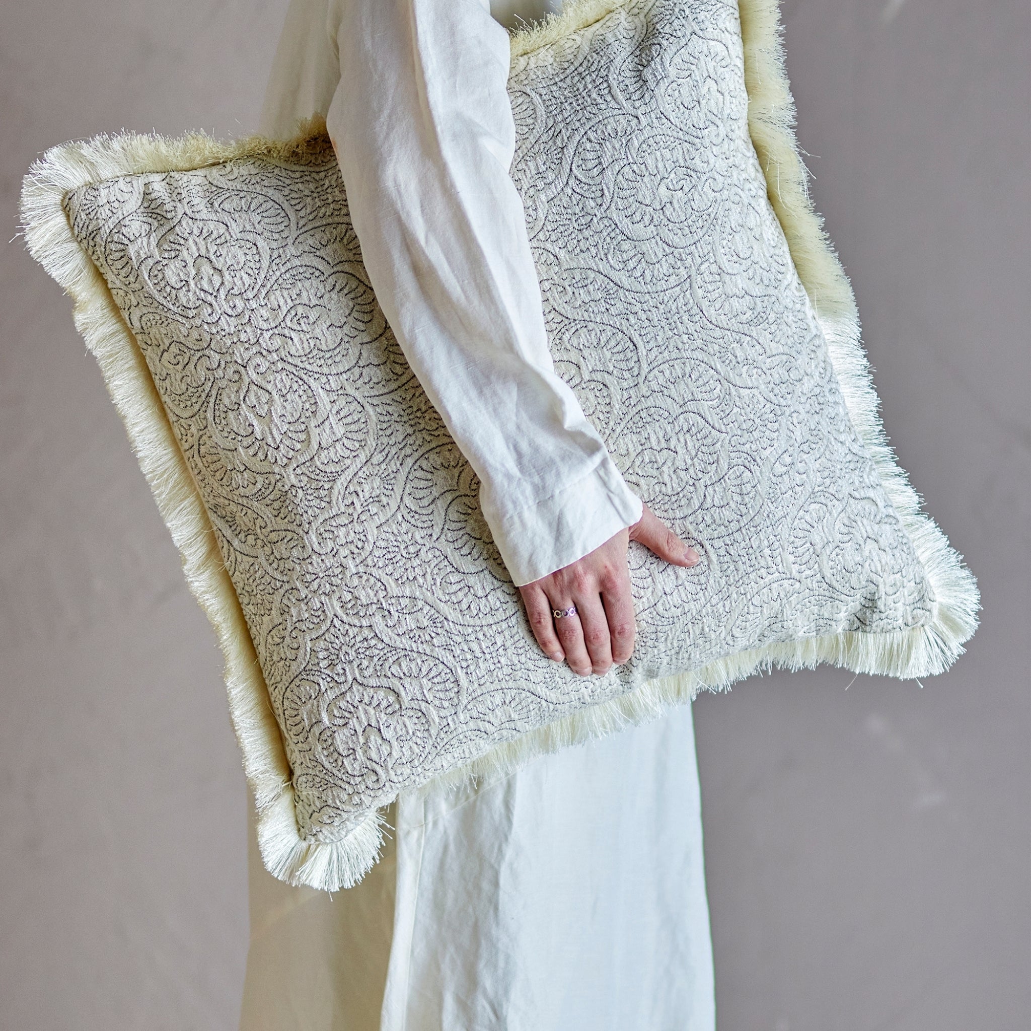 The Cabrie Cushion by Bloomingville is made of cotton and has a beautiful embroidered surface in light tones with an elegant pattern. The Cushion is finished with soft fringes that create a cozy look.