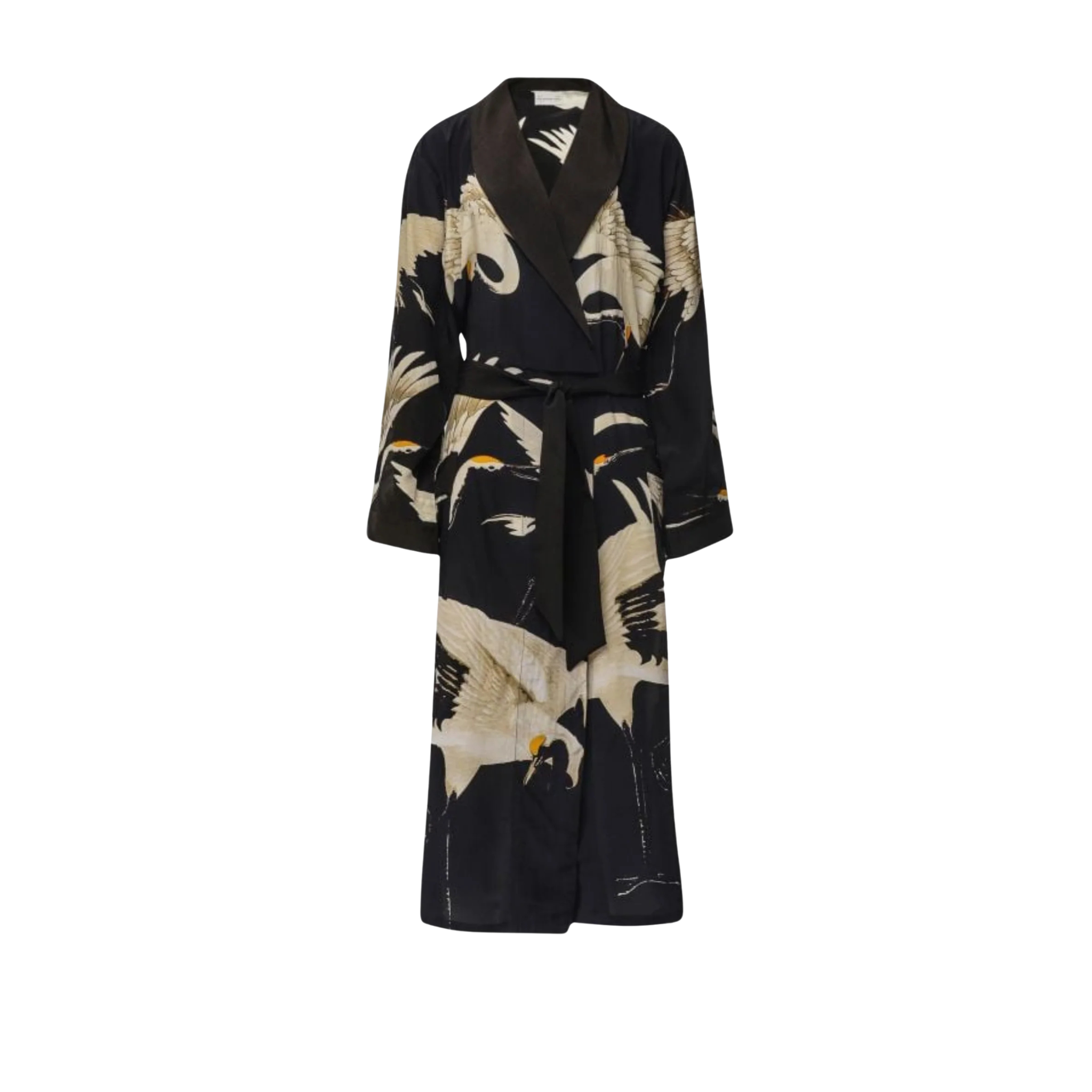 The One Hundred Stars Stork Black Crepe Gown offers a sophisticated silhouette in luxurious crepe fabric. Perfectly designed for night attire, it also works beautifully as a refined layer over any outfit, combining versatility with timeless elegance.